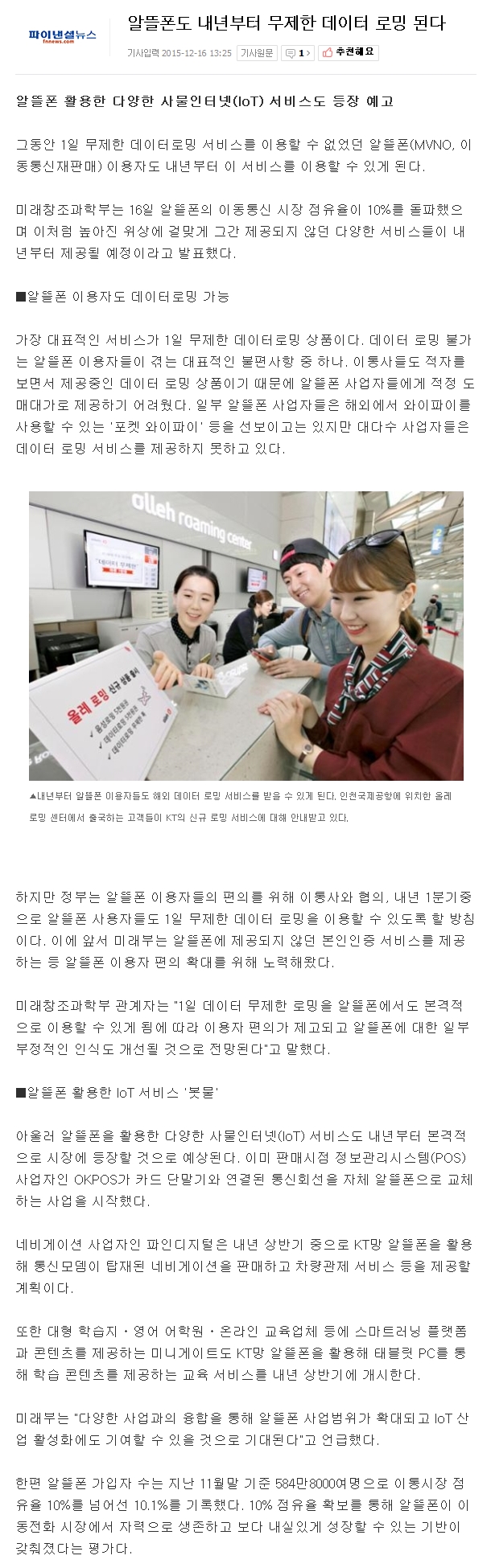알뜰폰도 내년부터 무제한 데이터 로밍 된다 페이지 정보 작성자 관리자 작성일15-12-16 14:17 조회4,942회 댓글0건 이전글 다음글 목록 본문 알뜰폰도 내년부터 무제한 데이터 로밍 된다 댓글목록 등록된 댓글이 없습니다. 이전글 다음글 목록
